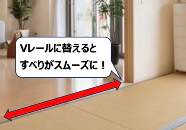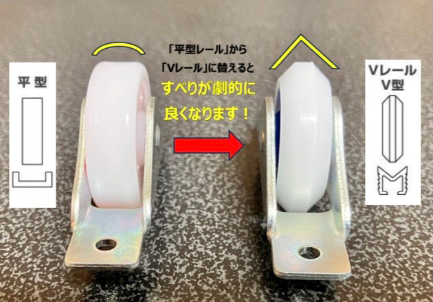 フラッターレールを従来の「平型レール」から「V型レール」に替えるとすべりが劇的にスムーズに軽くなります。